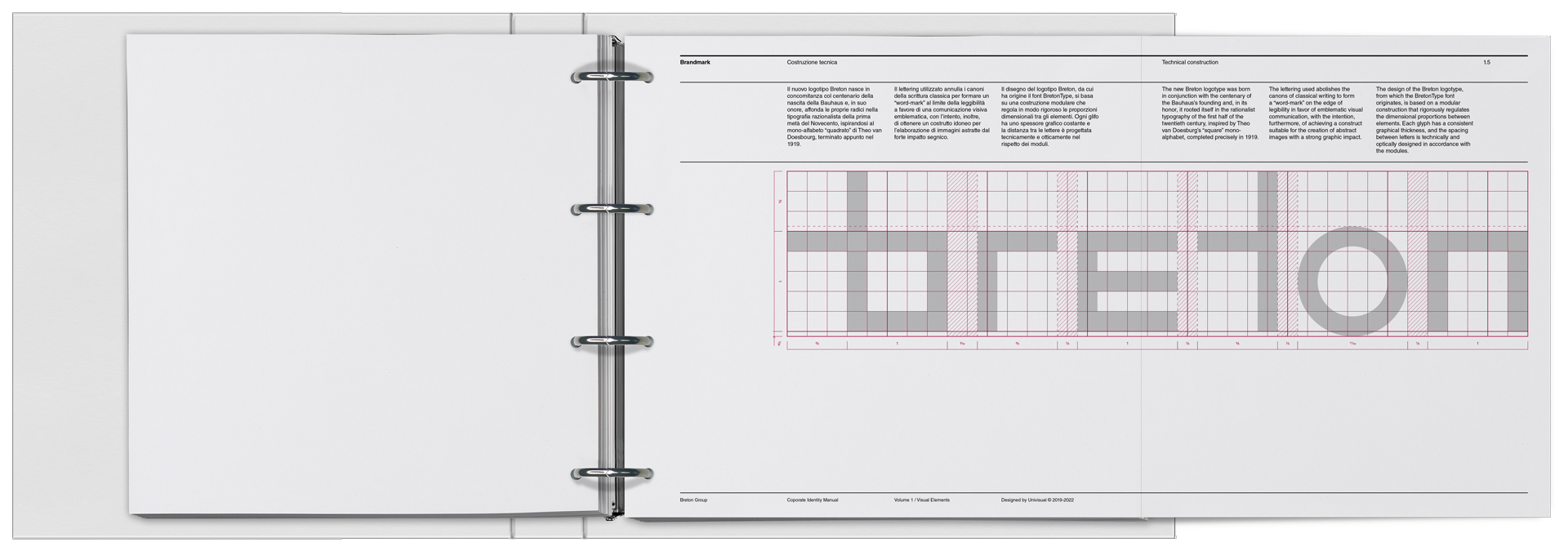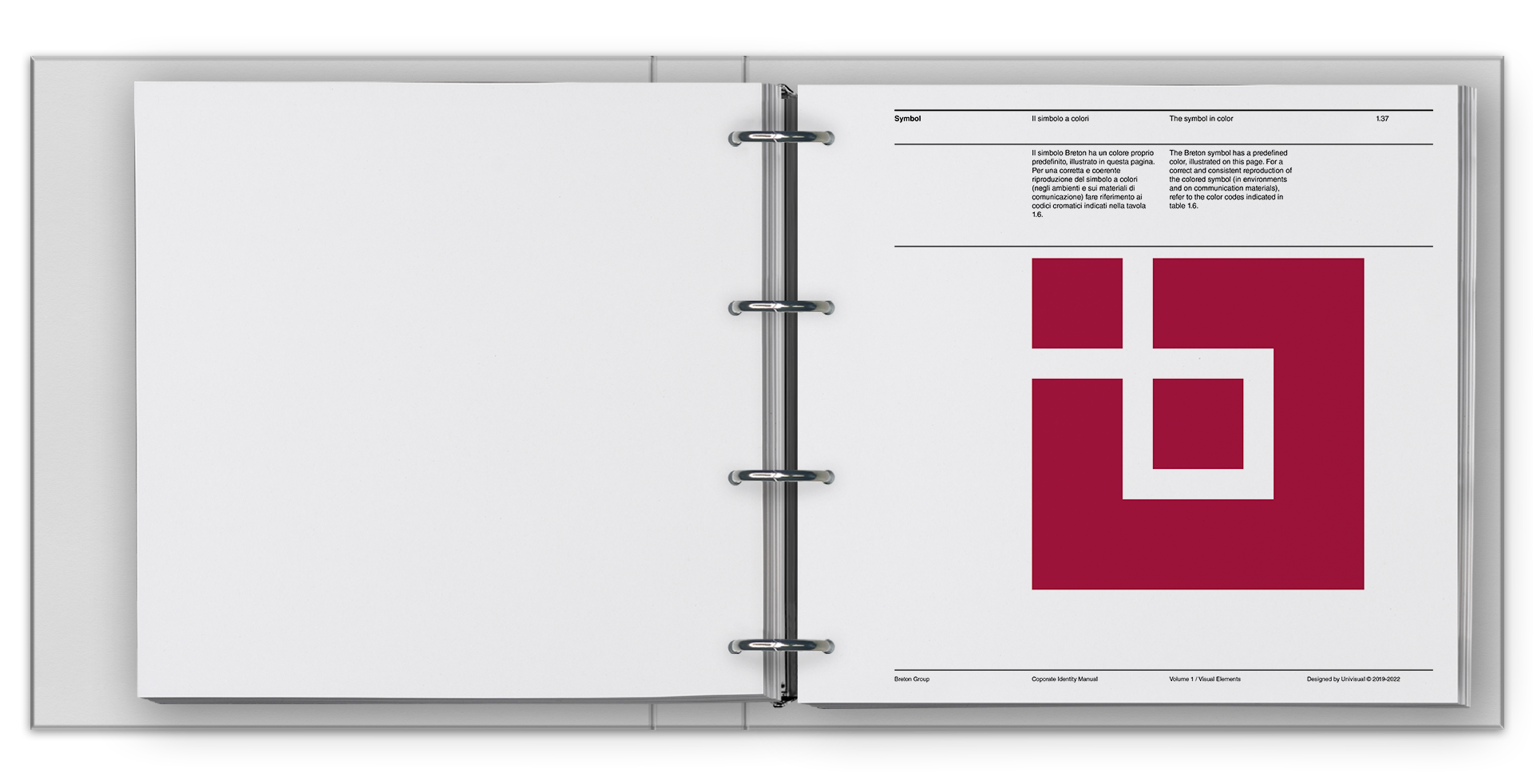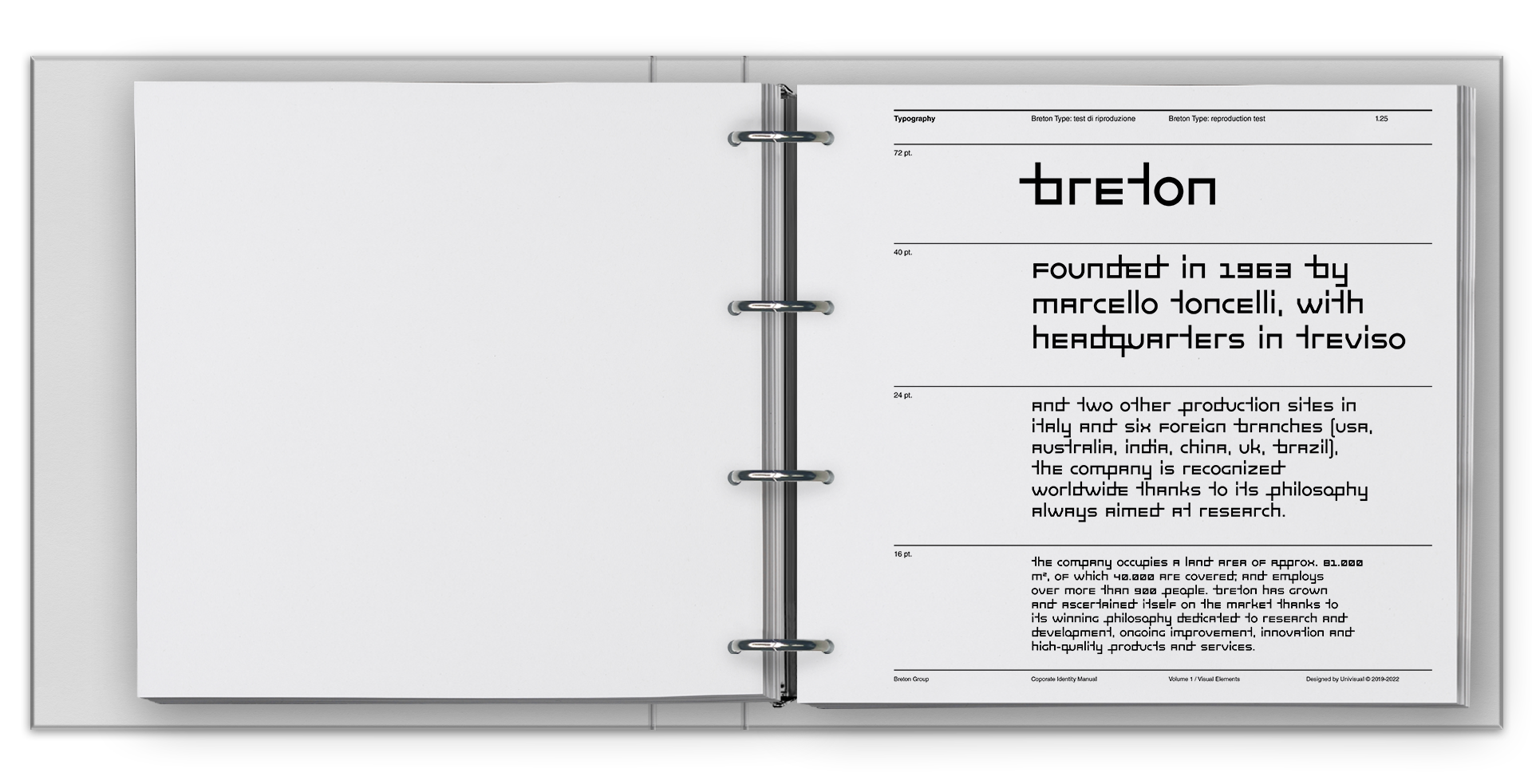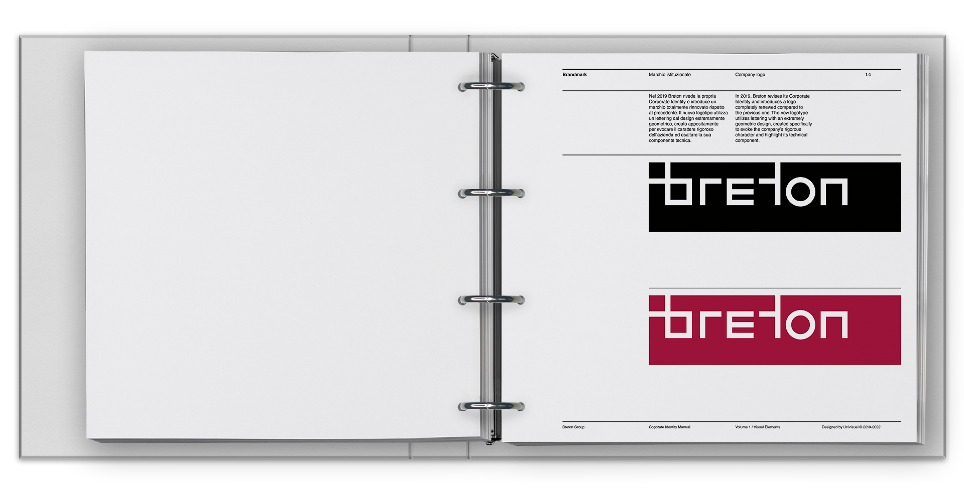 Manuale per l’uso del marchio e per l’applicazione della corporate identity del gruppo Breton, multinazionale italiana specializzata nella progettazione e produzione di macchine e impianti per diversi settore industriali.